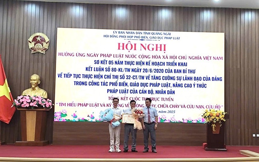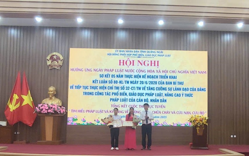 Qua hơn 12 năm triển khai, đến nay Ngày Pháp luật nước Cộng hòa xã hội chủ nghĩa Việt Nam (viết tắt là Ngày Pháp luật Việt Nam), ngày 9/11 hằng năm, đã được tổ chức đồng bộ, ngày càng thiết thực, hiệu quả, thấm sâu vào đời sống xã hội, lan tỏa đến các cơ quan, tổ chức, doanh nghiệp, trường học và Nhân dân trên địa bàn tỉnh. Tiếp tục thực hiện Luật Phổ biến, giáo dục pháp luật, kế hoạch phổ biến, giáo dục pháp luật năm 2025; đồng thời nhằm khơi dậy tinh thần thượng tôn Hiến pháp và pháp luật, Hội đồng Phối hợp phổ biến, giáo dục pháp luật tỉnh đã tổ chức Hội nghị hưởng ứng Ngày Pháp luật Việt Nam năm 2025 với 02 nội dung: (1) “Sơ kết, đánh giá hiệu quả 05 năm thực hiện Quyết định số 1521/QĐ-TTg ngày 06/10/2020 của Thủ tướng Chính phủ về tổ chức triển khai Kết luận số 80-KL/TW ngày 20/6/2020 của Ban Bí thư về việc tiếp tục thực hiện Chỉ thị số 32-CT/TW, ngày 09-12-2003 của Ban Bí thư về tăng cường sự lãnh đạo của Đảng trong công tác phổ biến, giáo dục pháp luật, nâng cao ý thức pháp luật của cán bộ, Nhân dân”; (2) Tổng kết Cuộc thi trực tuyến “Tìm hiểu pháp luật và kỹ năng về phòng cháy, chữa cháy và cứu nạn, cứu hộ” trên địa bàn tỉnh Quảng Ngãi.