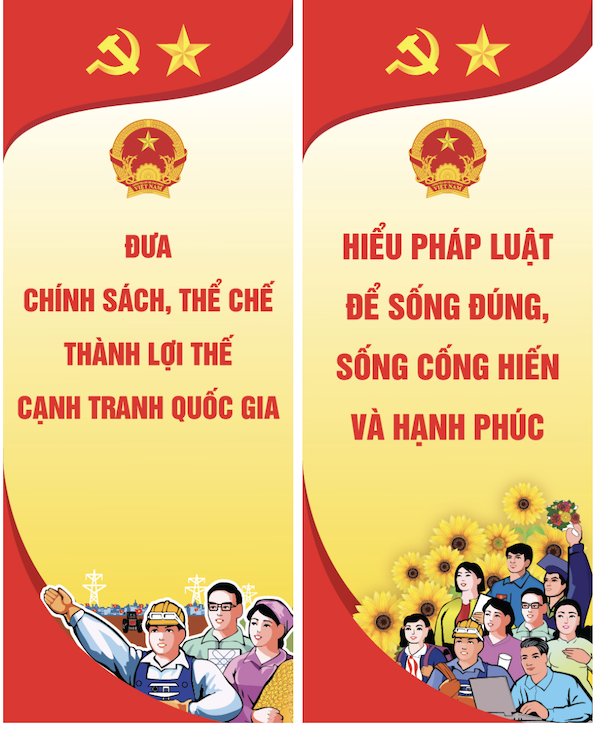 Các mẫu pano, banner, standee truyền thông hưởng ứng Ngày Pháp luật Việt Nam do Bộ Tư pháp thiết kế